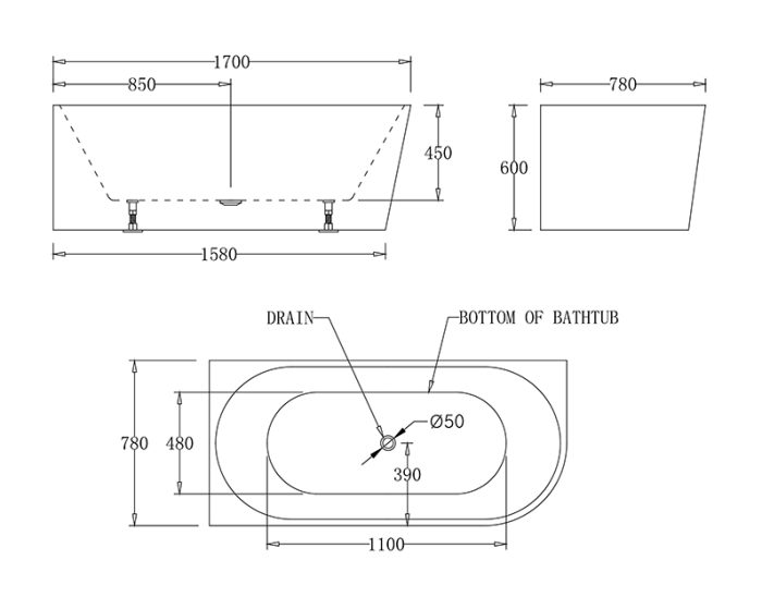 - Size: 1700mm (Long) x 780mm (Wide) x 600mm (Height)