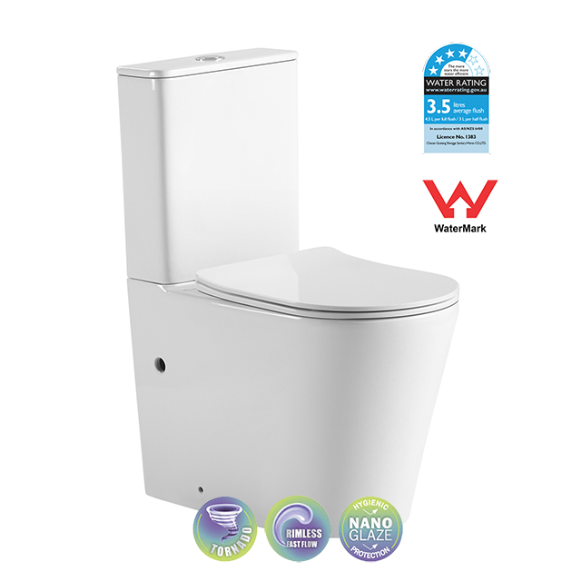 Home Toilets Back To Wall Toilet Suites MBST6088RT VERA Tornado Rimless Toilet Suite